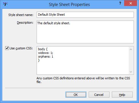 Add any CSS definitions you like in the field, and they will be added to the beginning of the CSS file that Jutoh generates, as well as the individual style definitions generated by Jutoh or specified explicitly by the user.
